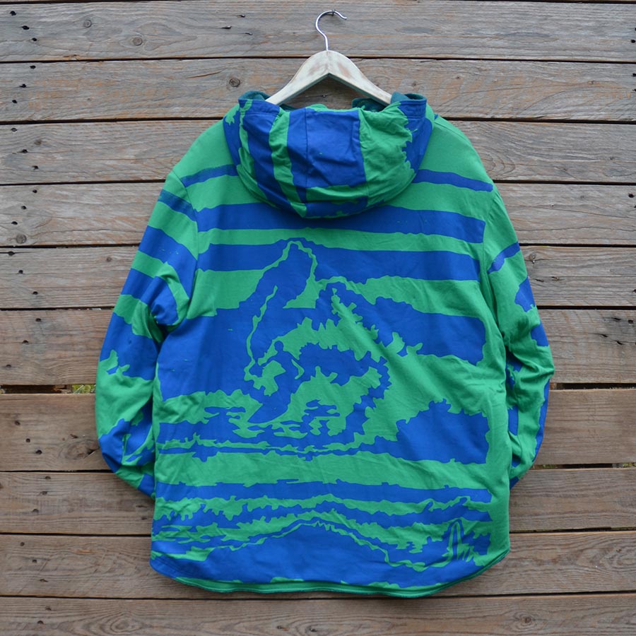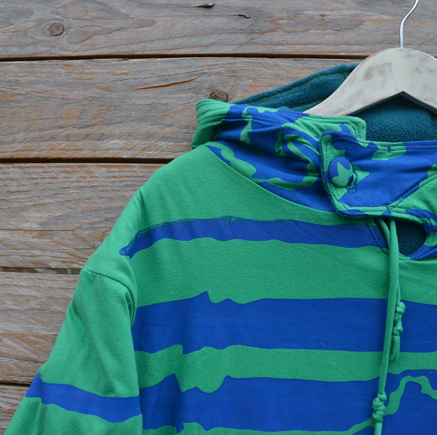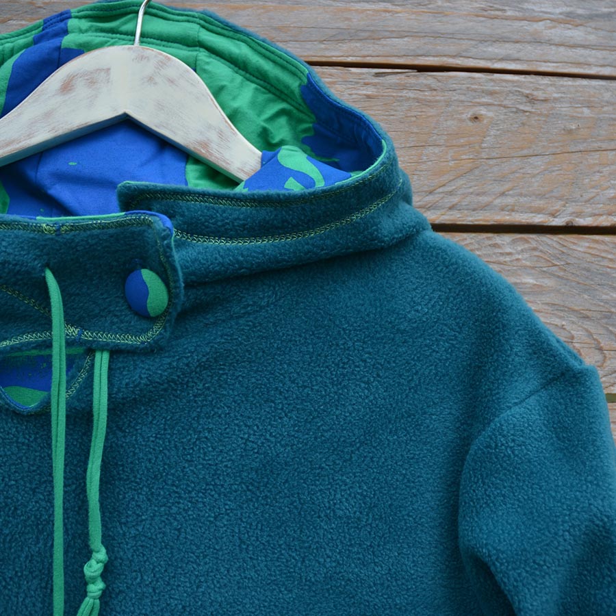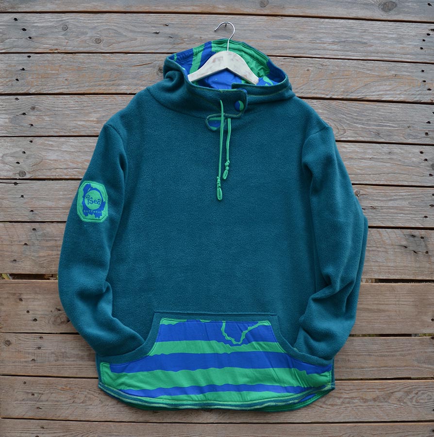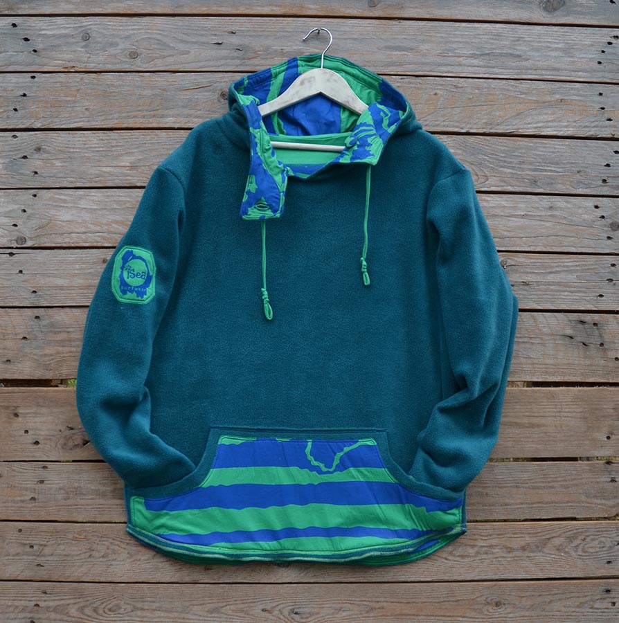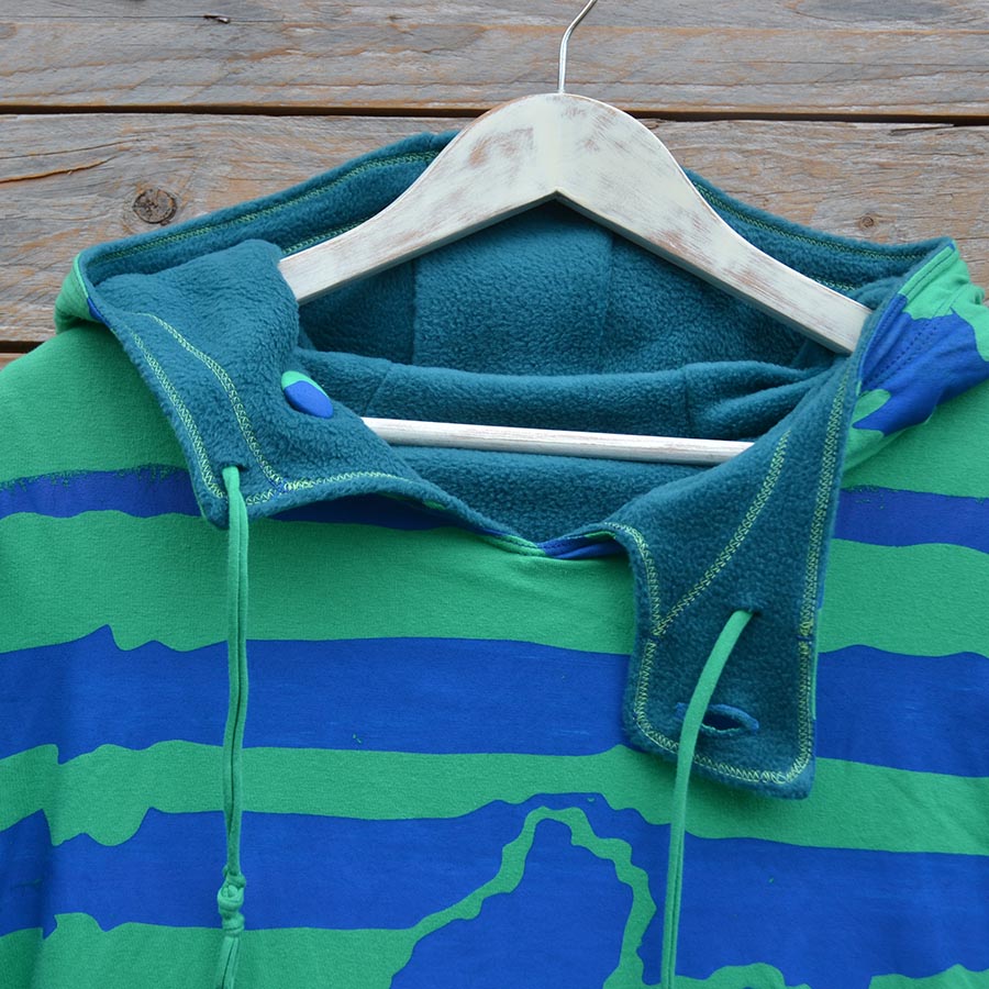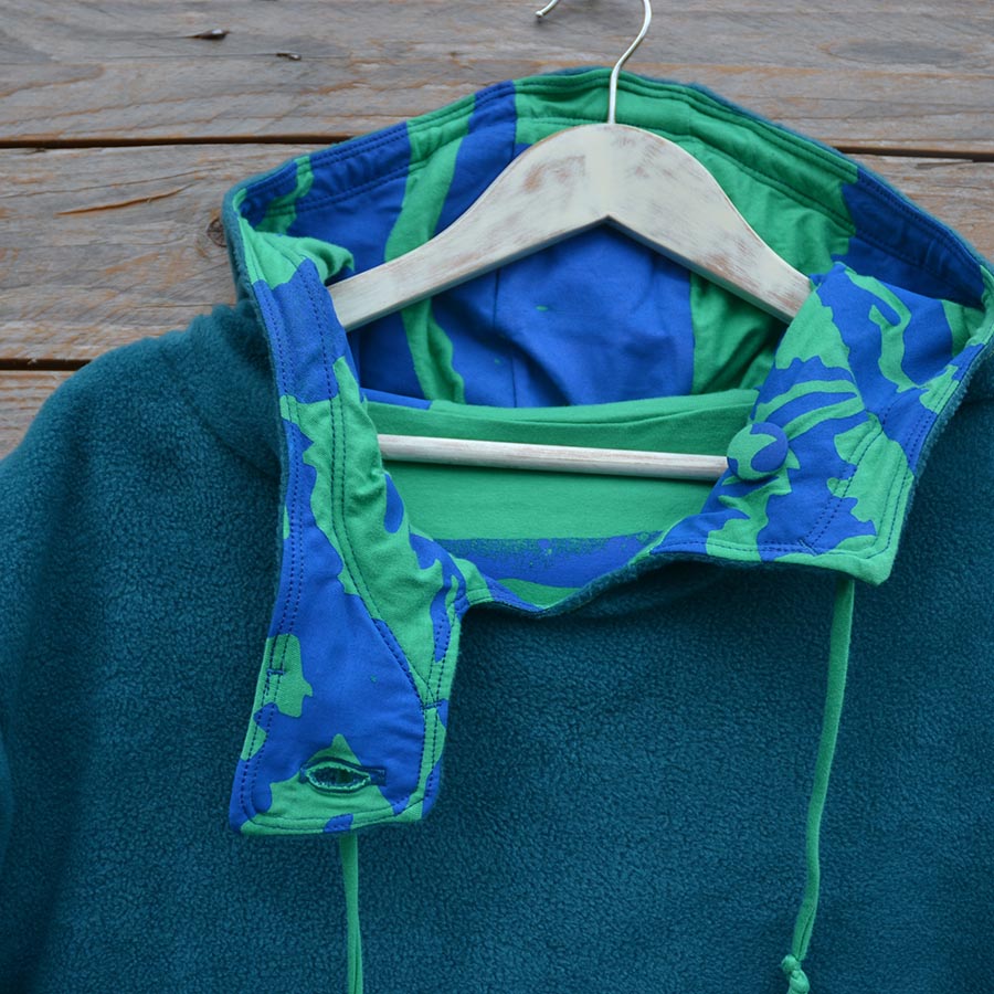 The men’s version of our reversible hoody in warm fleece and screen printed jersey, designed for men but great for women who want a looser fit too.
